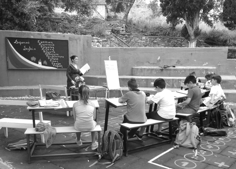Αγαπητοί συνάδελφοι, βγείτε με τους μαθητές σας στην αυλή και στο προαύλιο του σχολείου σας και κάντε εκεί μάθημα, κάτω από το φως του ήλιου, που μεταβολίζει την βιταμίνη D, εξασφαλίζοντας γερά οστά και δυνατό ανοσοποιητικό σύστημα. Κανένας δεν θα τολμήσει να ισχυριστεί ότι είναι καλύτερα να μένετε μέσα στους τέσσερις τοίχους και να εισπνέετε κορωνοϊούς και κανένας γονέας δεν θα αρθρώσει δικαιολογίες, του τύπου «το κλωνάρι μου, θα ιδρώσει, θα κρυώσει, θ’ αρρωστήσει, θα πεθάνει». Αντίθετα, αν το θελήσετε μπορείτε να τους έχετε βοηθούς σας, στη μεταφορά των καθισμάτων και των θρανίων, αν σας είναι απαραίτητα, κι ενός φορητού πίνακα μαρκαδόρου. Κι αν το σχολείο δεν έχει τη δυνατότητα αγοράς του, είκοσι ευρώ δηλαδή, εκείνοι θα το κάνουν, προσκομίζοντας όχι έναν αλλά πολλούς.