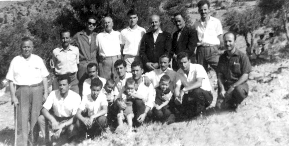 Πάνω: Ανδρονίκη Κρυοβρυσανάκη, Στυλιανή Κατσούγκρη, Μαρία Δημητρακάκη, Γιώργης Στεργιάκης, Καλλιόπη Χαριτάκη, Γιώργης Χατζηδάκης, Στέλιος Σπινθουράκης, Μανόλης Κρυοβρυσανάκης, Λευτέρης Μανουσάκης, Γιάννης Χατζηδάκης, Μανόλης Αλεξάκης, Μανόλης Χαριτάκης, Αντωνία Κωστάκη, Αδάμης Κατσούγκρης, Κατίνα Αλεξανδράκη, Ελευθερία Μανουσάκη, Στυλιανή Κουνάλη, Ουρανία Χαριτάκη.
