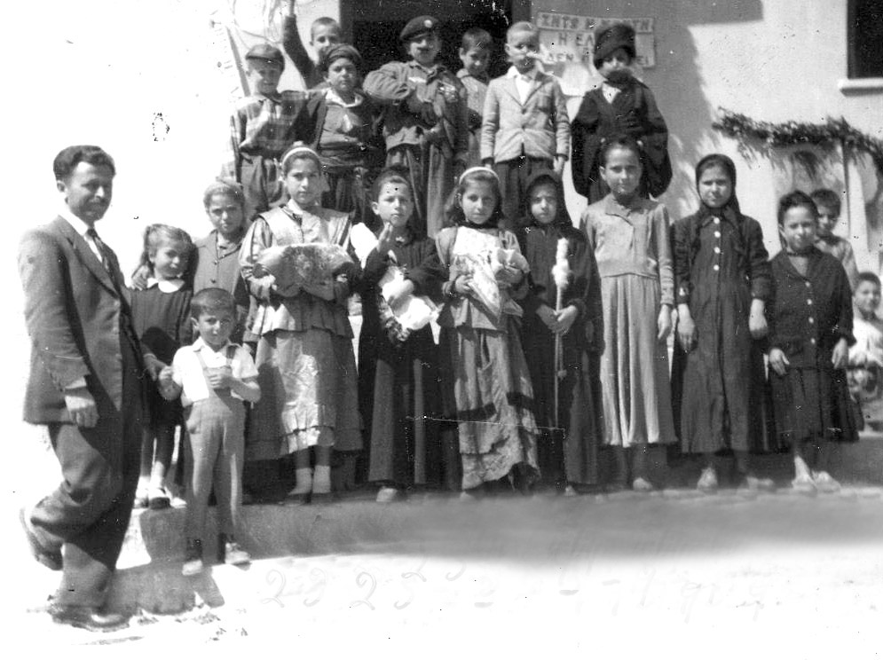 Με δάσκαλο το Β. Φρογάκη οι 33 μαθητές το 1954-55 (σε γιορτή)