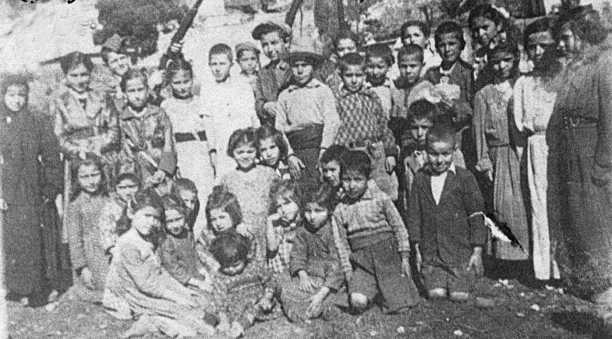 Κάτω: Γεωργία Κρυοβρυσανάκη, Αντωνία, Γεωργία Καρπούζη, Ιωάννα Μανουσάκη, Ιωάννα Αλεξάκη, Σοφοκλής Τσικολιδάκης, Ν. Φρογάκη (μικρή), Ασπασία Κατσούγκρη, Κατίνα Στεργιάκη, Αντωνία Κουνάλη, Γιώργης Σαριδάκης, Γιάννης Χαριτάκης, Στέλιος Μανουσάκης, Λευτέρης Κρυοβρυσανάκης.
