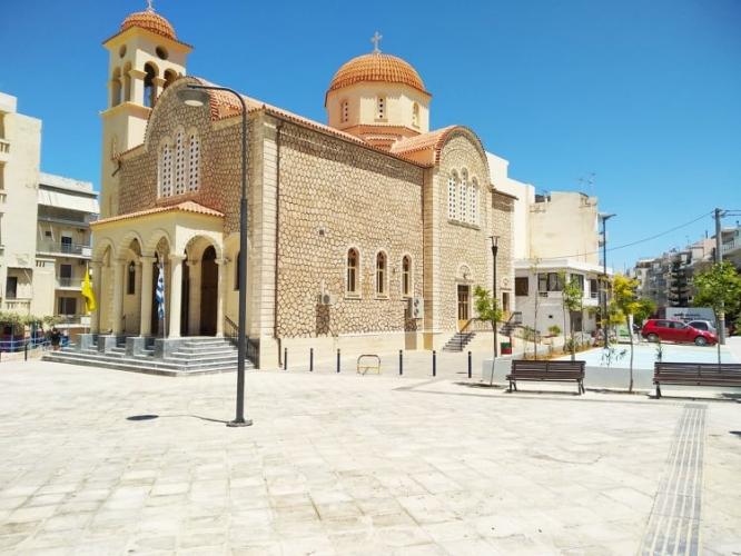 Αρχικά, σύμφωνα με μια πρώτη εκδοχή, σε εκείνο το σημείο υπήρχε ένα εικονοστάσι στη χάρη του Αγ.Γεωργίου και πιθανολογείται πως είναι το εικονοστάσι που υπάρχει ακόμη και σήμερα επί της λεωφ. Εμμ.Πορτάλιου και Αιγαίου γωνία.