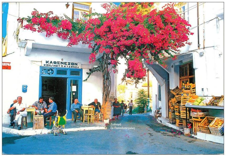 Πάνορμο γύρω στο 1995 έξω από το καφενείο Κυδωνία. Καρτ ποσταλ Σπύρου και Αλεξάνδρας Σπύρου από την συλλογή του