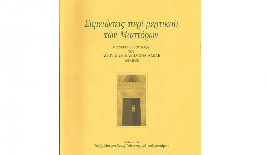 Το βιβλίο αποτελεί έκδοση της Ιεράς Μητροπόλεως Ρεθύμνης και Αυλοποτάμου και προλογίζεται προσηκόντως από τον Σεβασμιώτατο Μητροπολίτη μας κ. Ευγένιο, ο οποίος ευστόχως εστιάζει και καταδεικνύει, «προχωρώντας πιο μέσα από τα γράμματα», την κεντρική, από κάθε άποψη, θέση που κατείχε, ανέκαθεν, ο ιερός Ναός στην ζωή των ενοριτών, αποτελώντας το κύτταρο της ζωής των ανθρώπων και των εκδηλώσεών τους. Στον Πρόλογό του, περαιτέρω, ο Σεβασμιώτατος διακρίνει και αρμοδίως ευχαριστεί, απονέμοντας τον δίκαιο έπαινο της Εκκλησίας, για τα καλά τους έργα όλους όσοι εργάστηκαν και για το έργο αυτό, αλλά και για όλα τα άλλα. Και πρώτα- πρώτα τον διατελέσαντα, πλέον των πενήντα ετών, εφημέριο της ενορίας Άδελε αιδεσ. πρωτ. Ανδρέα Παπαδογιάννη για την πρόνοιά του να διαφυλάξει ως κόρην οφθαλμού, επί τόσον μακρόν χρόνον διακονίας, το Αρχείο της Ενορίας και το πολύτιμο αυτό κατάστιχο του 1864.