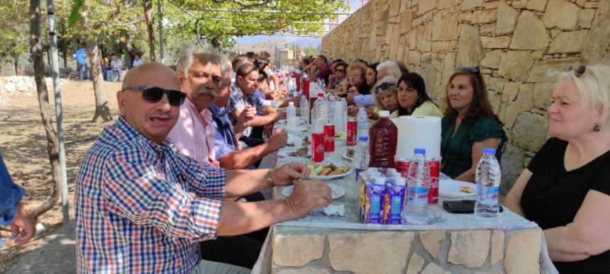 Εδώ και είκοσι χρόνια (2001), το Δ. Σ του Συλλόγου των Αϊγιαννιωτών της Αθήνας, στο οποίο είχα την τιμή να είμαι Πρόεδρος πρότεινε και έγινε αποδεκτό να πραγματοποιείται κάθε χρόνο ένας επιπλέον εκκλησιασμός την πρώτη Κυριακή μετά της Παναγίας για τους απόδημους κυρίως Αϊγιαννιώτες και όχι μόνο, δεδομένης της απουσίας των κατά την επίσημη εορτή στις17 Σεπτεμβρίου. Ο εκκλησιασμός πραγματοποιείται κανονικά κάθε χρόνο. Έτσι και φέτος, Κυριακή 22 Αυγούστου του 2021, μας αξίωσε ο Θεός να εκκλησιαστούμε και να ζητήσομε τη χάρι, της του Θεού Σοφίας και της Αγίας Σοφίας. Τελέστηκε η θεία λειτουργία από τον εφημέριο του χωριού π. Παύλο, ο οποίος στο κήρυγμά του αναφέρθηκε στο βίο της Αγίας Σοφίας και των θυγατέρων της και παρακάλεσε τους παρευρισκόμενους να ανάβουν ένα καντηλάκι σε μια γωνιά του σπιθιού τους, να θυμιάζουνε και να λένε το Κύριε Ιησού Χριστέ ελέησον.ημάς Ακολούθησε η ευλογία των άρτων, η ανταλλαγή ευχών και η παράθεση Αϊγιαννιώτικου κεράσματος που ετοίμασαν οι άξιες και φημισμένες νοικοκεράδες, προσφορά όλης της δαπάνης του εκλεκτού απόδημου συγχωριανού μας επιχειρηματία Γιώργη Γαζοράκη, τον οποίο για άλλη μια φορά ευχαριστούμε από καρδιάς. Τον όλο συντονισμό είχε ο αγαπητός Πρόεδρος του Συλλόγου Αϊγιαννιωτών της Αθήνας Γιώργης Χανιωτάκης, αλλά και ο ακούραστος βοηθός της ενορίας Μανώλης Κορωνάκης. Μεγάλη ήτανε η προσφορά και πολλών άλλων ανδρών και γυναικών στους οποίους αξίζουνε πολλά μπράβο. Και του χρόνου με υγεία.