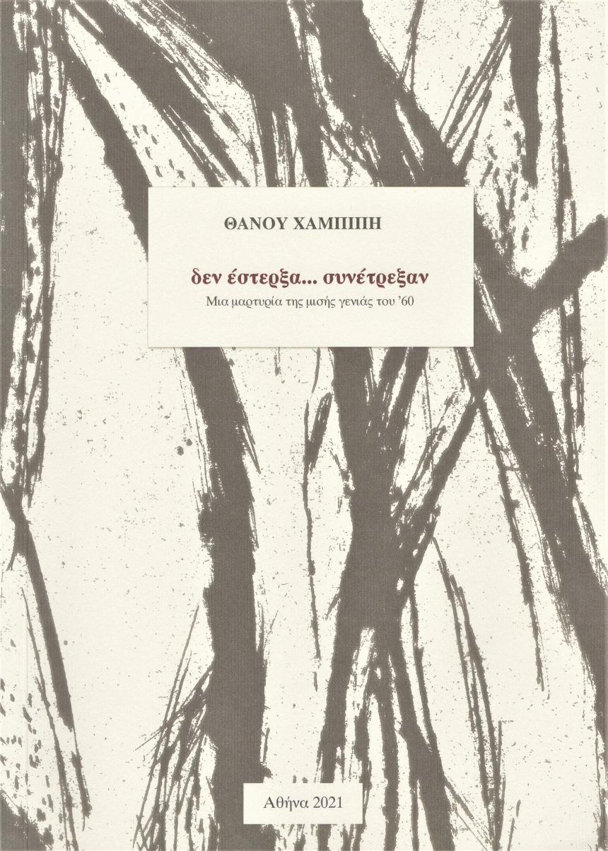 Είναι ορισμένα βιβλία που τα διαβάζει κανείς γιατί πρέπει. Άλλα που τα διαβάζει απλά για να φτάσει ίσαμε το τέλος τους. Άλλα που κρατούν αμείωτο το ενδιαφέρον. Και πολύ λίγα που διαβάζεις την μια πρόταση και θες να την ξαναδιαβάσεις προτού πας στην επόμενη, που σύντομα ανακαλύπτεις ότι έχει ακόμα μεγαλύτερο ενδιαφέρον. Ένα τέτοιο βιβλίο που δεν χορταίνεις και που επιστρέφεις συχνά είναι και το βιβλίο του τέως Νομάρχη Ρεθύμνης Αθανασίου Χαμπίπη που φέρει τον τίτλο «δεν έστερξα… συνέτρεξαν» και με υπότιτλο «Μια μαρτυρία της μισής γενιάς του ’60». Πρόκειται για ένα βιβλίο που εκδόθηκε στην Αθήνα τον Ιούλιο του 2021 για λογαριασμό των εκδόσεων «ΤΕΧΝΗ ΛΟΓΟΣ» και προλογίζεται από την Σία Αναγνωστοπούλου. Το βιβλίο περιέχει δώδεκα εικονογραφήσεις κειμένου και δύο πρωτότυπες χαλκογραφίες του σπουδαίου εικαστικού Αριστείδη Πατσόγλου.