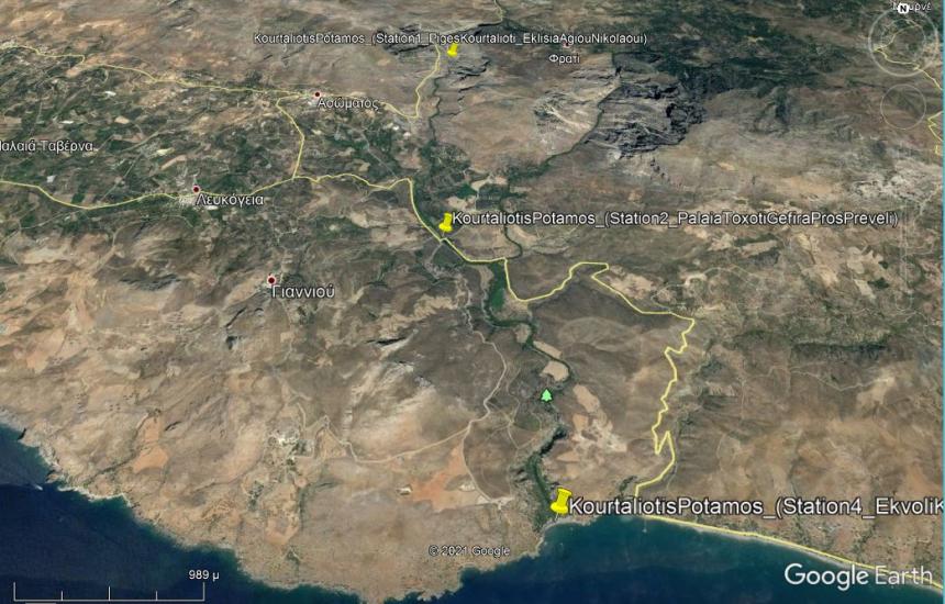 Σε μελλοντικό χρόνο θα μετρηθεί και ο ρυθμός παροχής νερού στην εκβολή του ποταμού στην θάλασσα, στην θέση της «Παραλίας Πρέβελης» καθώς επίσης και σε ενδεχόμενες άλλες θέσεις κατά μήκος του ποταμού όπου διαπιστωθεί μελλοντικά ότι υπάρχει η δυνατότητα πρόσβασης, έτσι ώστε να διαμορφωθεί μία περισσότερο ολοκληρωμένη εικόνα σχετικά με την υδρολογική συμπεριφορά του «Ποταμού Κουρταλιώτη» σε όλο το μήκος της διαδρομής του όπως απεικονίζεται και στην παρακάτω εικόνα.