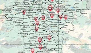 Εικόνα 6. Ενδεικτικές θέσεις, (πραγματοποιηθέντων μέχρι τώρα), μετρήσεων των ρυθμών των διερχόμενων παροχών νερού, (κίτρινες «πινέζες σημάνσεων μερών»), από τον MSc. Πολιτικό Μηχανικό/Υδρολόγο, Θωμά Παπαλάσκαρη, (Google Earth).