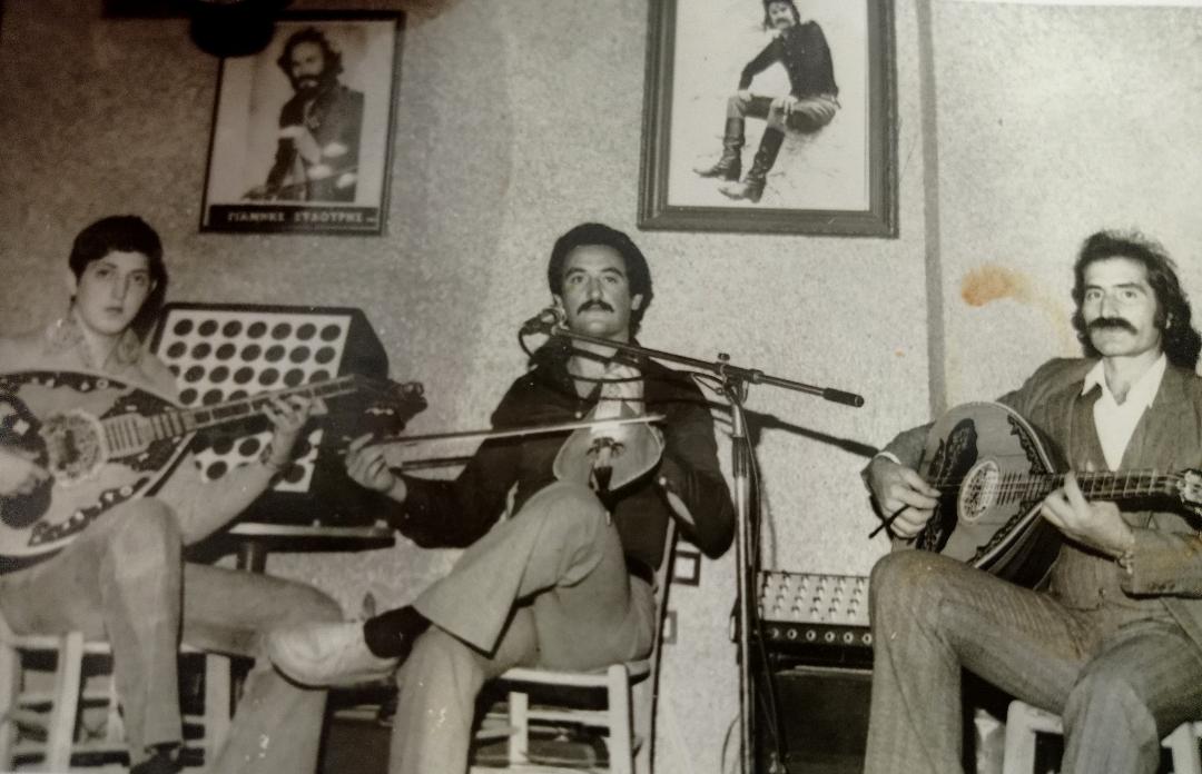 Περιστασιακά είχε πάιξει με τον καταπληκτικό Νίκο Μανιά, με τον Γιώργη Κατσαμά, τον Γιώργη Χαλκιαδάκη, και άλλους σπουδαίους μουσικούς μέχρι να ανέβει στην Αθήνα και να υπηρετήσει στο Ναυτικό. Εκεί συνεργάστηκε για δυο χρόνια με τον Κώστα Παπουτσάκη στο ιστορικό κέντρο Κρητικοπούλα στο Χαιδάρι. Μαζί τους ήταν και ο λαγουτιέρης Δημήτρης Παπουτσάκης (αδερφός του Κώστα) και το πρόγραμμα ήταν μικτό διότι στο λαικό τραγουδούσε η ξακουστή τραγουδίστρια Χαρούλα Λαμπράκη αλλά και οι αδερφοί Κατσάμπα.