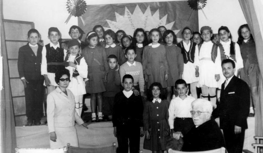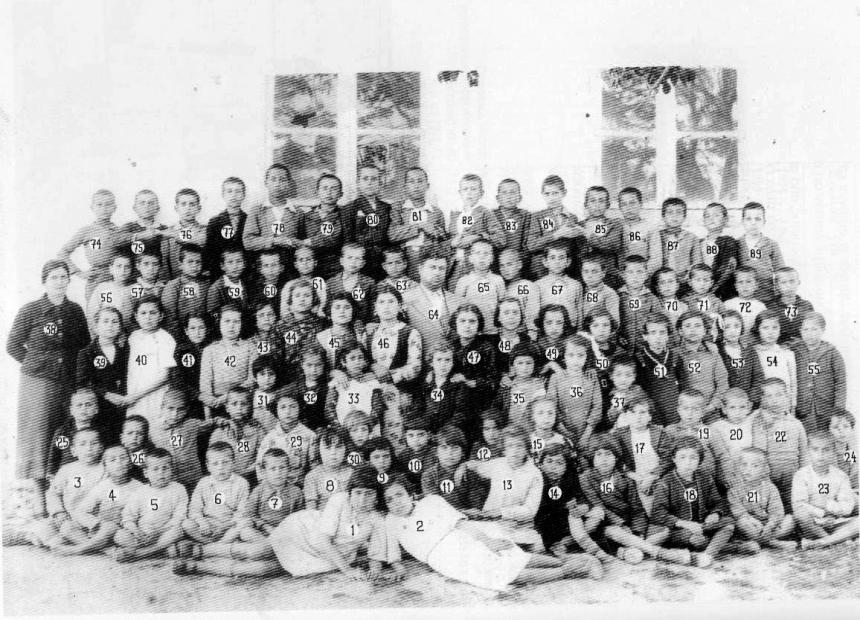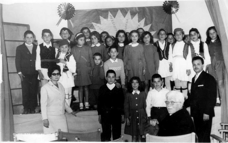 Ο διευθυντής Κ. Μυγιάκης και η δασκάλα Ε. Σπαντιδάκη, με τους μαθητές: