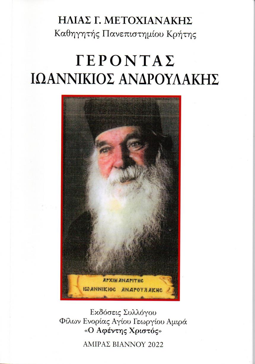 Ο κ. Ηλίας Γ. Μετοχιανάκης, Καθηγητής για χρόνια του Παιδαγωγικού Τμήματος του Πανεπιστημίου Κρήτης, εξέδωσε πρόσφατα ένα βιβλίο με τον τίτλο «Γέροντας Ιωαννίκιος Ανδρουλάκης». Το βιβλίο, αποτελεί έκδοση του Συλλόγου Φίλων Ενορίας Αγίου Γεωργίου Αμιρά, «Ο Αφέντης Χριστός» και προλογίζεται δεόντως από τον Πρόεδρό του π. Εμμανουήλ Ραπτάκη.