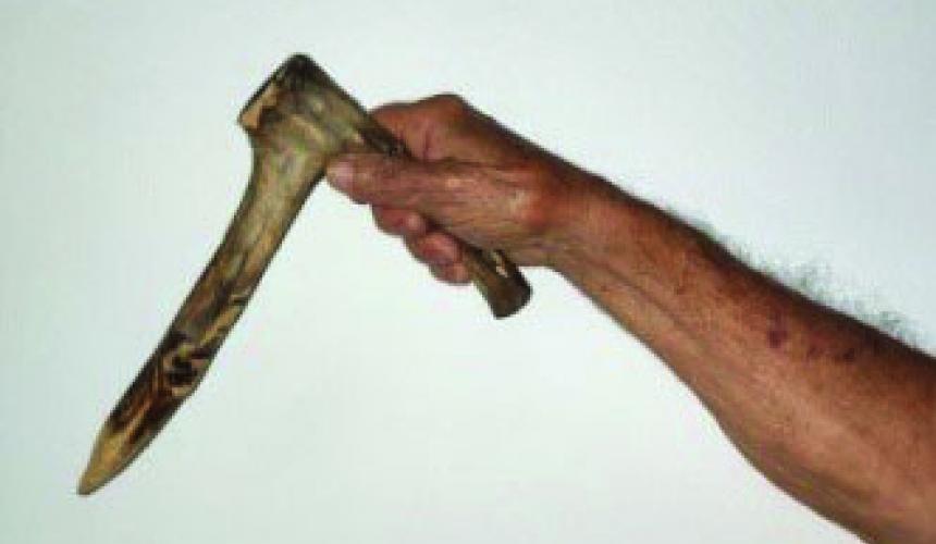 Το έμαθα να τα φτιάχνω και να φυτεύω από τους Μικρασιάτες που είχαμε στο χωριό μου. Αυτό το εργαλείο εξυπηρετούσε πολύ όλους τους αγρότες όλα τα χρόνια της κατοχής που υποφέρανε.