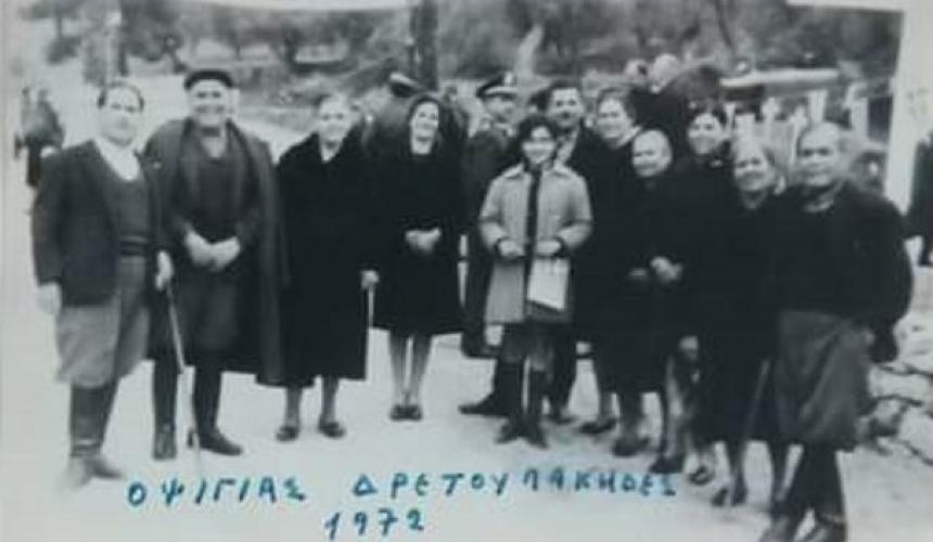 Από τις οικογένειες του Οψιγιά αρχές του 20ου αιώνα ήταν του Γιώργη Δρετουλάκη-Μαρίας Κατσούγκρη, με τους οκτώ γιους και μία κόρη: Φραγκιάς, Μιχάλης, Παναγιώτης, Στέλιος, Νίκος, Σπύρος, Στάυρος ο ιερομόναχος Συμεών, Αντώνης και Κυριακούλα.
