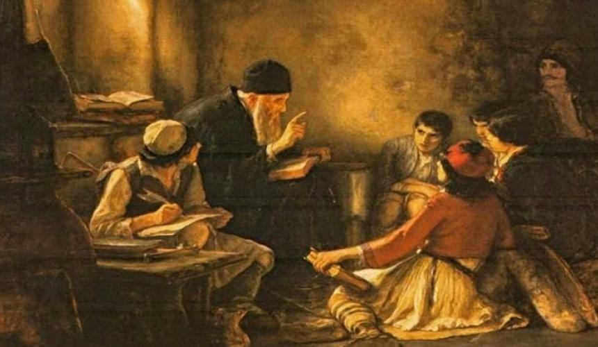Κρυφό σχολειό. Oι Οθωμανοί Σουλτάνοι γνώριζαν τη δύναμη της μόρφωσης και γι’ αυτό την καταδίωκαν! Ήταν το 1885, τότε που ο Νικόλαος Γύζης εμπνεύστηκε τη σκηνή με τον καλόγερο να διδάσκει!