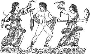 Οι Ερινύες ήσαν μυθικές θεότητες με φρικιαστική εμφάνιση. Έφεραν μαύρα ρούχα , κρατούσαν αναμμένες δάδες για να διαλύουν το σκότος των εγκλημάτων, κατοικούσαν στον κάτω κόσμο και όπλο τους είχαν το φιδοφόρο μαστίγιο. Σιγά-σιγά όμως ο τρόμος αυτός
