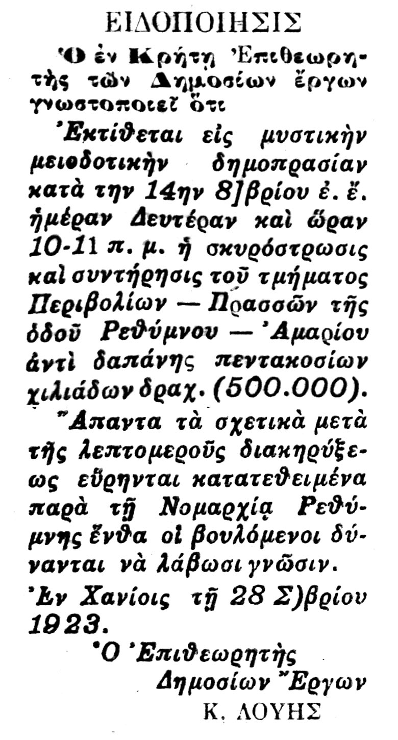 [15] Εφημ. Κρητική Επιθεώρησις, φ. 36/19-8-1014.