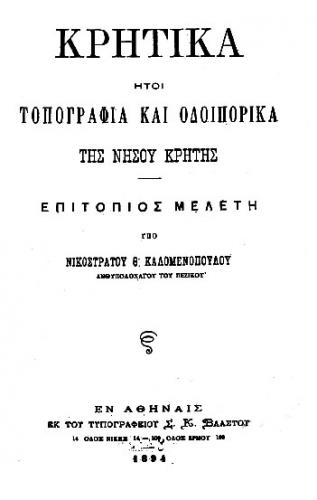 [1] Νικόστρατος Θ. Καλομενόπουλος, Κρητικά, εν Αθήναις 1894.