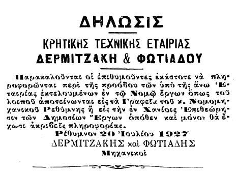 [11] Ο Εμμανουήλ Δερμιτζάκης ήταν πολιτικός μηχανικός Ρεθεμνιώτικης καταγωγής.