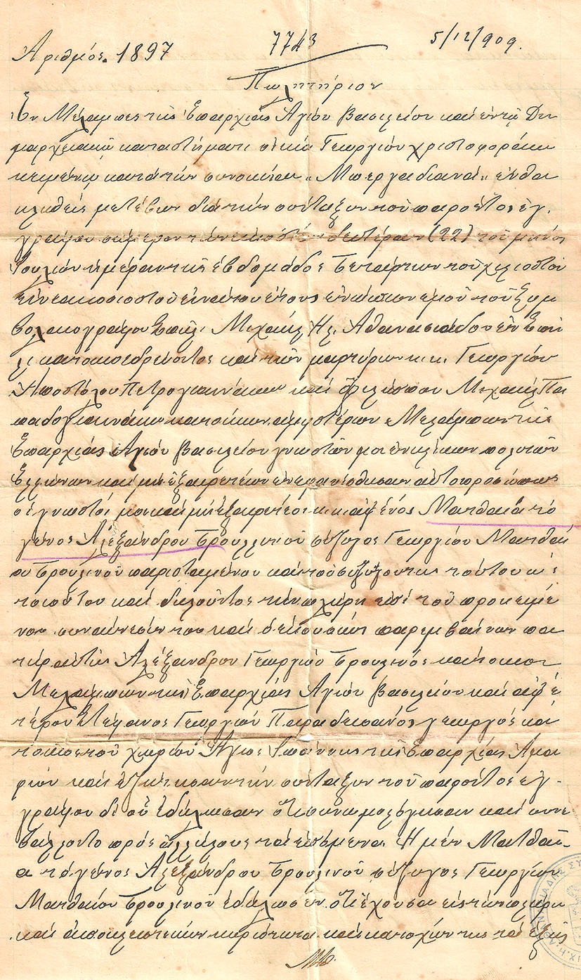 Το συμβόλαιο αυτό συντάχθηκε από τον τότε Συμβολαιογράφο Σπηλίου Μιχαήλ Ηλ. Αθανασιάδη, στις 22 Ιουλίου του έτους 1909, δηλαδή πριν από 114 χρόνια.
