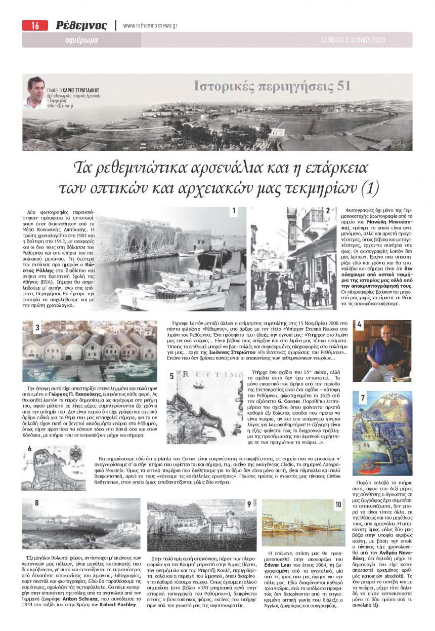 ΑΠΟΨΕΙΣ 07.06.2023 11:00Τα ρεθεμνιώτικα αρσενάλια και η επάρκεια των οπτικών και αρχειακών μας τεκμηρίων Χάρης Στρατιδάκης Facebook Twitter Copy link 0 0 Facebook Twitter Copy link ΣΧΕΤΙΚΑ ΑΡΘΡΑ Απόψεις 04.11.2025 10:30 Εν πομπή, παρελάσει και παρατάξει: 1937-1957 Απόψεις 08.10.2025 11:55Ο Άλκης που άλλαξε το Ρέθυμνο… Απόψεις 23.09.2025 11:00Εύφημες μνείες - Εκπαιδευτικοί που τιμήθηκαν από το Σχολικό Μουσείο (2) Απόψεις 10.09.2025 10:45Η ιστορία και το πλαίσιο δημιουργίας των τεσσάρων πρώτων δημόσιων κήπων του Ρεθύμνου