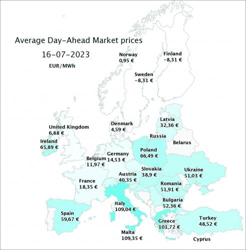 Ο μύθος λέει πως αν βάλουμε πολλά αιολικά+φωτοβολταϊκά θα έχουμε φθηνό ρεύμα. Στην πραγματικότητα ισχύει ακριβώς το αντίθετο! Όπως φαίνεται στο χάρτη, (που δημοσίευσε η Ρυθμιστική Ενέργειας), την Κυριακή 16/7 η Ελλάδα είχε τη 2η πιο τιμή ακριβή ρεύματος στην Ευρώπη, στη χονδρική αγορά. Τη Δευτέρα 17/7 την 3η πιο ακριβή, παρόλο που έχουμε ήδη σε λειτουργία πάνω από 10.000MW αιολικά+φωτοβολταϊκά. Μάλιστα η τιμή είναι διπλάσια ή υπερδιπλάσια απ’ τις γειτονικές χώρες. Η ακριβή τιμή χονδρικής σύντομα θα φθάσει στη λιανική, εξοντώνοντας νοικοκυριά και επιχειρήσεις: πώς θα ανταγωνιστεί π.χ. ο Ελληνικός τουρισμός την απέναντι ακτή του Αιγαίου;