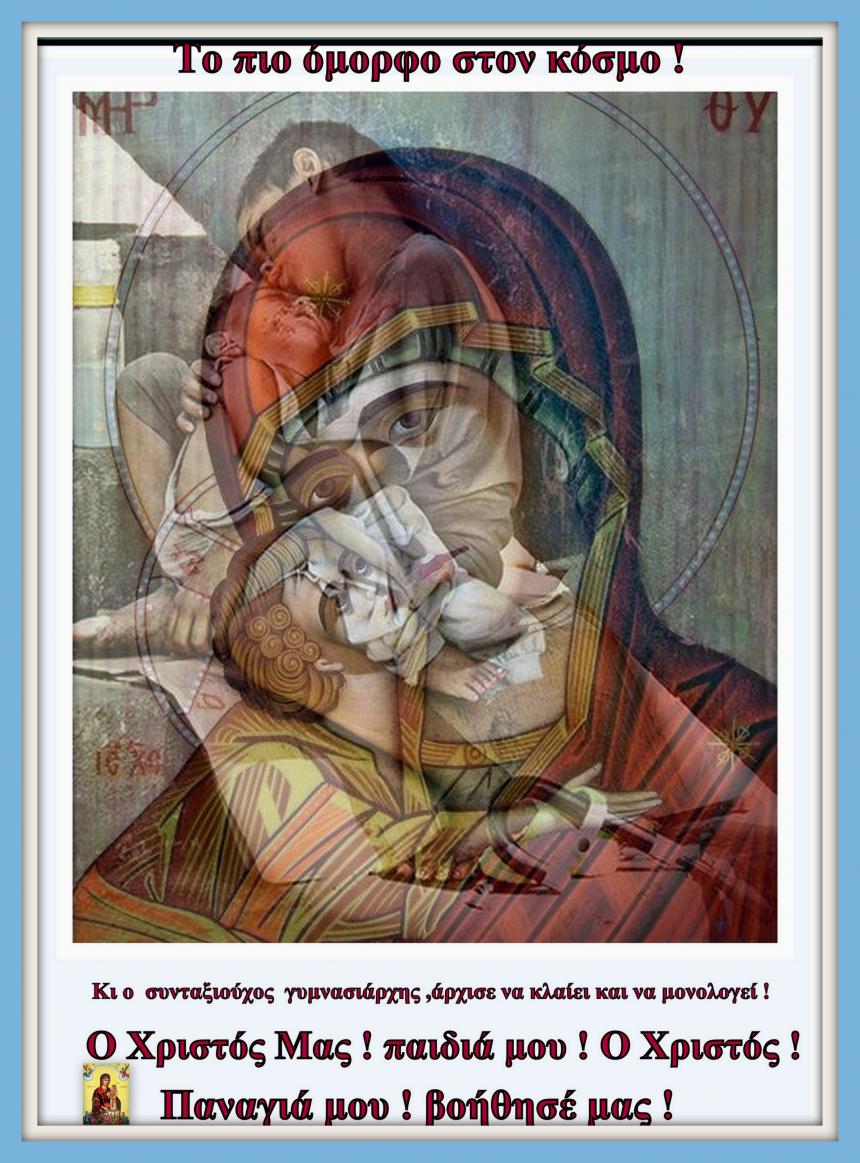 Και ένα πρωινό πήγαν στο μικρό βιβλιοπωλείο του κυρ Γιώργου στο Ρέθυμνο και μίλησαν με ένα συνταξιούχο γυμνασιάρχη και συζήτησαν για τον κόσμο και το Θεό κι όταν του ζήτησαν να τους πει πιο είναι το πιο όμορφο πράγμα στο κόσμο, αυτός τους έδωσε μία εικόνα της Παναγίας, το Ρόδον το Αμάραντον, που είχε τυπώσει και το διένειμε δωρεάν- και αφού τους χαιρέτησε, άρχισε να κλαίει σαν παιδάκι και να μονολογεί : Ο Χριστός ! παιδιά μου, ο Χριστός !