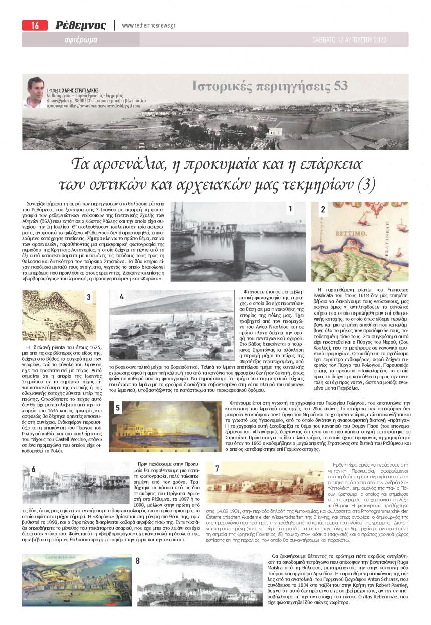 ΑΠΟΨΕΙΣ 15.08.2023 10:00Τα αρσενάλια, η προκυμαία και η επάρκεια των οπτικών και αρχειακών μας τεκμηρίων (3) Χάρης Στρατιδάκης Facebook Twitter Copy link 0 0 Facebook Twitter Copy link ΣΧΕΤΙΚΑ ΑΡΘΡΑ Απόψεις 04.11.2025 10:30 Εν πομπή, παρελάσει και παρατάξει: 1937-1957 Απόψεις 08.10.2025 11:55Ο Άλκης που άλλαξε το Ρέθυμνο… Απόψεις 23.09.2025 11:00Εύφημες μνείες - Εκπαιδευτικοί που τιμήθηκαν από το Σχολικό Μουσείο (2) Απόψεις 10.09.2025 10:45Η ιστορία και το πλαίσιο δημιουργίας των τεσσάρων πρώτων δημόσιων κήπων του Ρεθύμνου