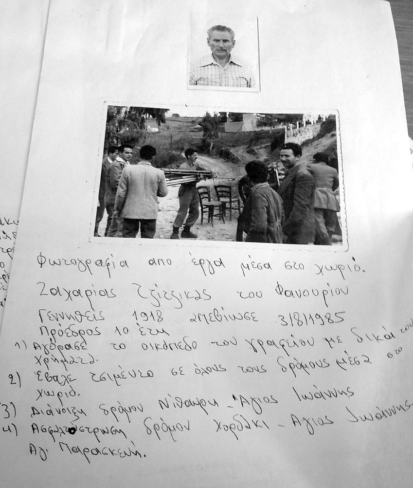 Αφορμή να κάμω τούτη τη μικρή αναφορά μου έδωσε ένα χειρόγραφο αγνώστου που έφτασε πρόσφατα στα χέρια μου. Η γραφή του μου είναι άγνωστη, αλλά όποιος και να το έγραψε περιλαμβάνει περιληπτικά την προσφορά του Ζαχαρία (Ζαχάρη) Τζίτζικα στο χωριό μας.