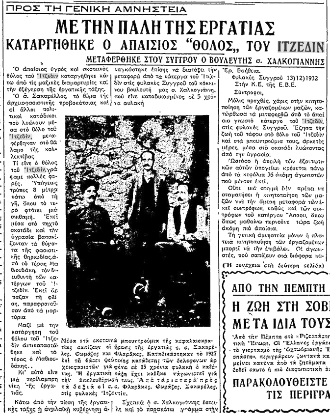 Η πλειοψηφία, ωστόσο, των πολιτικών κρατουμένων ήταν κομμουνιστές και άλλοι δημοκρατικοί πολίτες, αφού αμέσως μετά τη θέσπιση του Ιδιώνυμου το 1929 και τη συνακόλουθη ποινικοποίηση της ιδεολογίας και της δράσης του κομμουνιστικού κινήματος, στα τέλη Φεβρουαρίου του 1930, 18 μέλη του ΚΚΕ μεταφέρθηκαν από τις φυλακές της Αίγινας στο Ιτζεδίν.