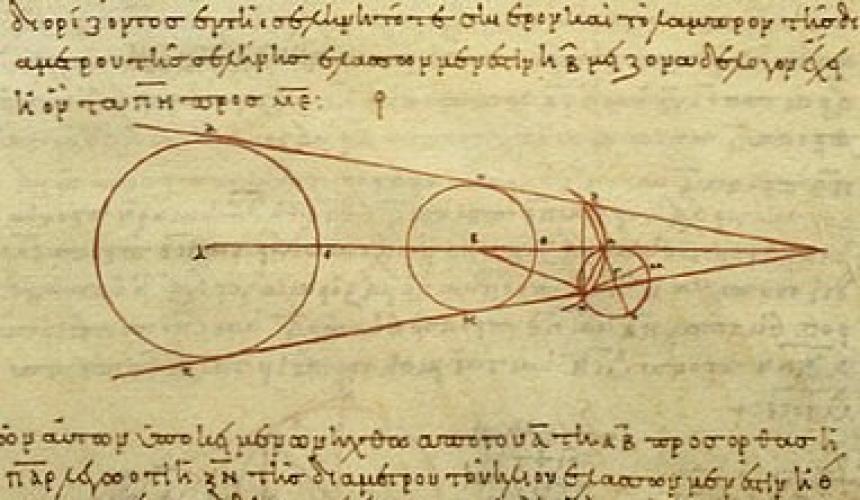 Μελέτη του Αρίσταρχου περί μεγεθών γης, ήλιου και σελήνης.