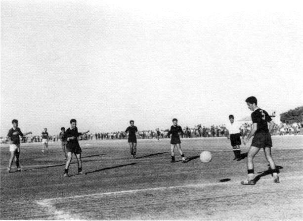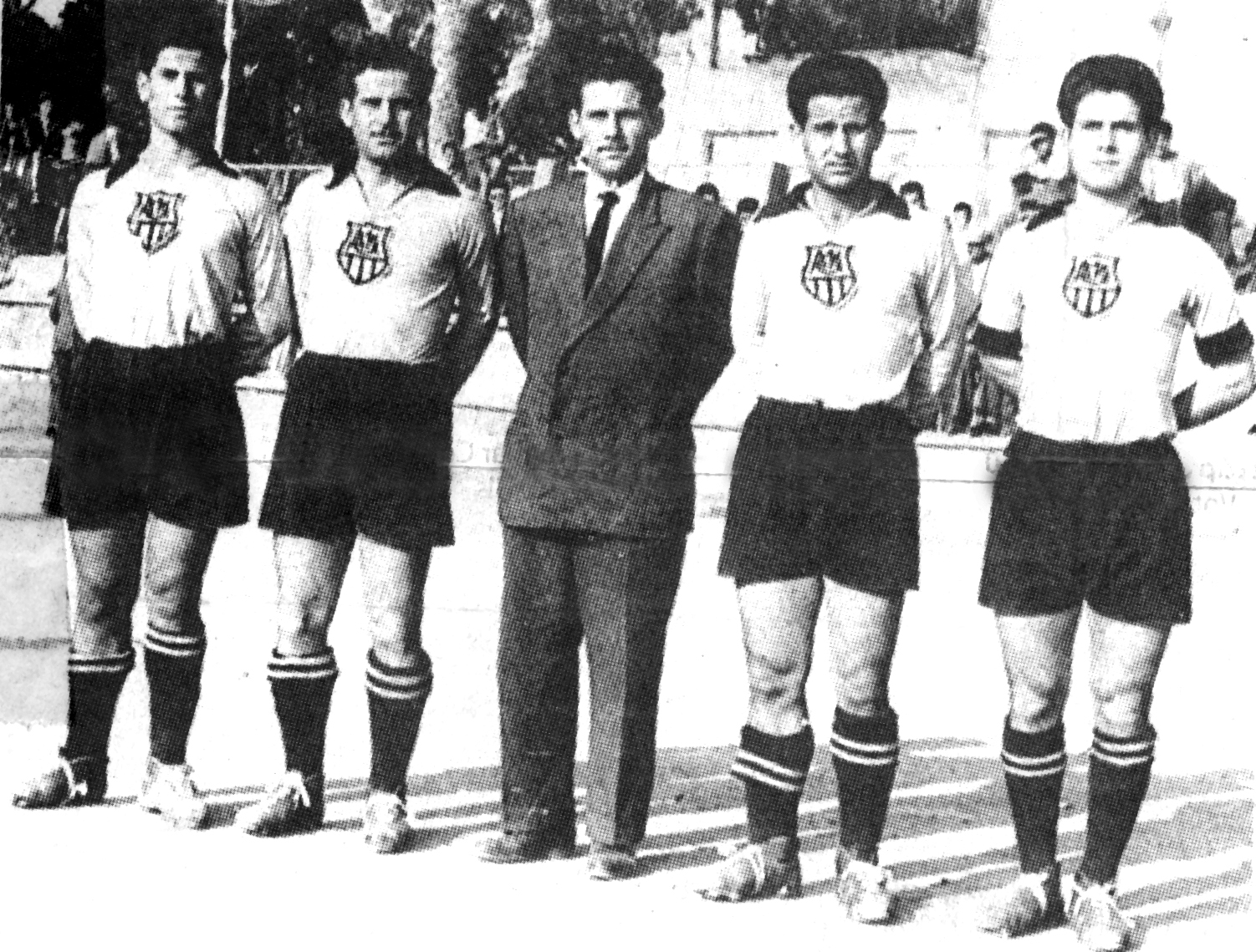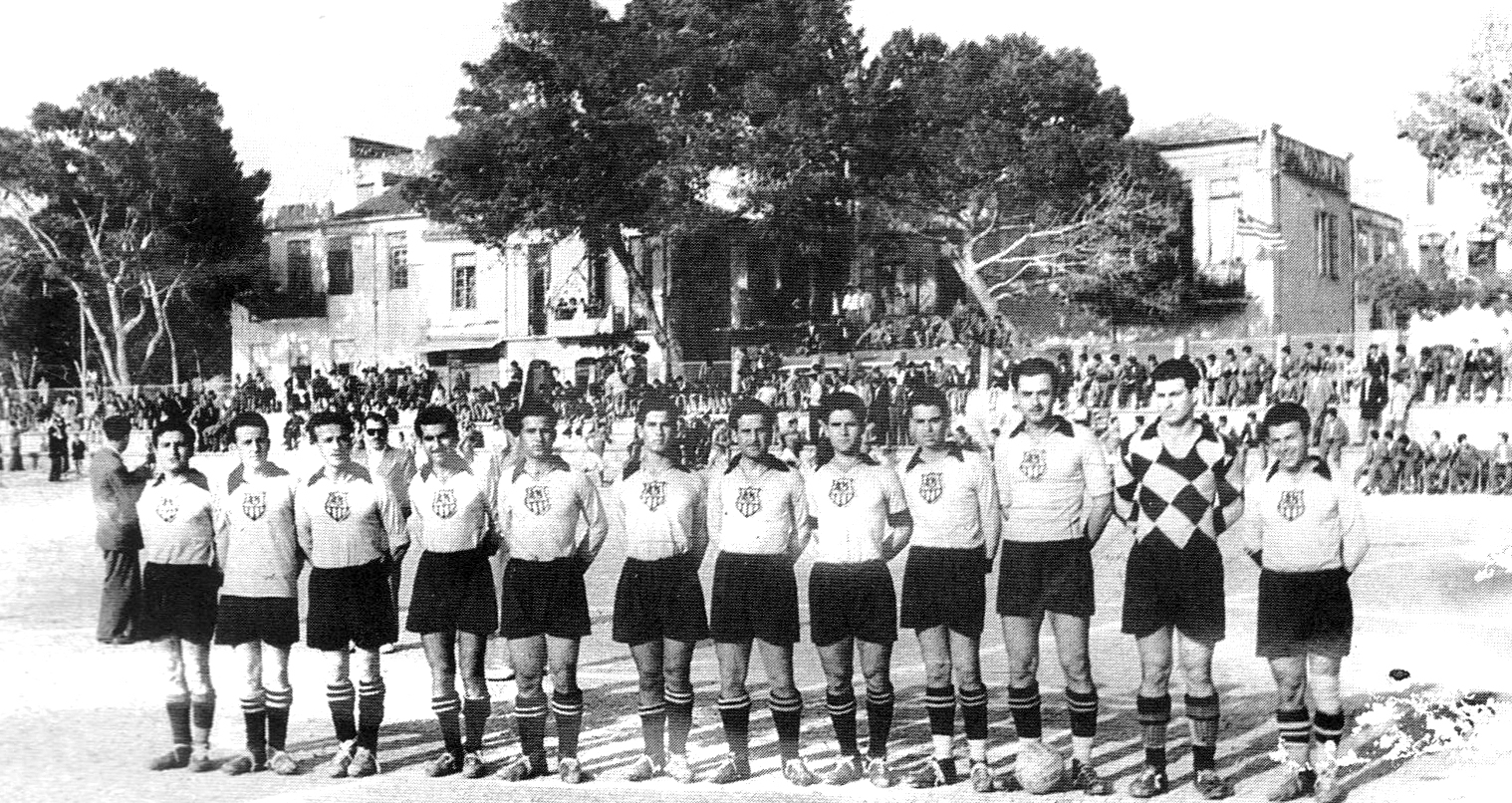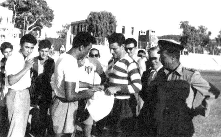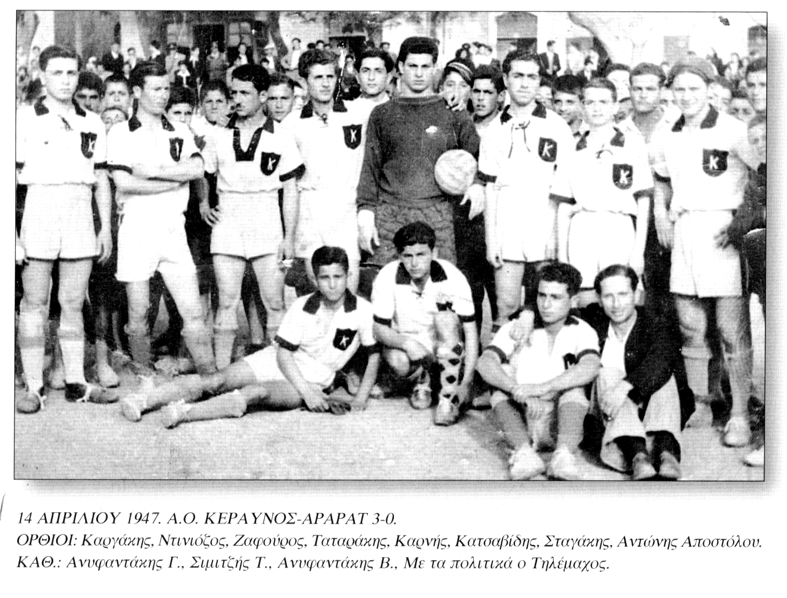 Το 1952 Κεραυνός -ΠΑΟ 0-0 με τους αρχηγούς Κ. Λινοξυλάκη και Γ. Καρνή ν' ανταλλάσουν λάβαρα, δίπλα τους ο διευθυντής Πυροσβεστικής Γ. Σβολόπουλος και Β. Δρανδάκης