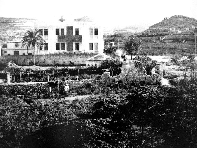 Θα σταματήσω όμως εδώ σήμερα για τη δυτική ακτογραμμή του Ρεθύμνου και θα ξαναγυρίσω στις περασμένες «Ιστορικές περιηγήσεις», στις οποίες αναφέρθηκα στην προσφορά του Κώστα Ράλλη. Είχα εκεί δημοσιεύσει μια μαθητική του φωτογραφία, σημειώνοντας ότι η δασκάλα ήταν η Αμφιθέα Ουγιάρογλου, ενώ στην πραγματικότητα ήταν η κόρη της Πόπη Πολυχρονάκη. Ο φίλος Κώστας δεν είναι βέβαια τόσων χρόνων, ώστε να είχε δασκάλα την αείμνηστη Αμφιθέα, είναι πολύ νεότερος, γι’ αυτό κι, όπως έγραφα, περιμένουμε απ’ αυτόν ακόμα πολλά. Αποζημιώνοντάς τον για τη αρχαιοχρονολόγηση, τού αφιερώνω τη διπλανή φωτογραφία, που άπτεται των ενδιαφερόντων του, με την οποία γίνεται παραπάνω από φανερό ότι τα ερείπια του τεκέ του Χασάν Μπαμπά διατηρήθηκαν πέριξ του Ορφανοτροφείου καθ’ όλη τη διάρκεια του Μεσοπολέμου. Ο τεράστιος σταυρός στο κέντρο του οικήματος σηματοδοτεί τη λειτουργία του ως νοσοκομείου κατά τον Β΄ Παγκόσμιο Πόλεμο.