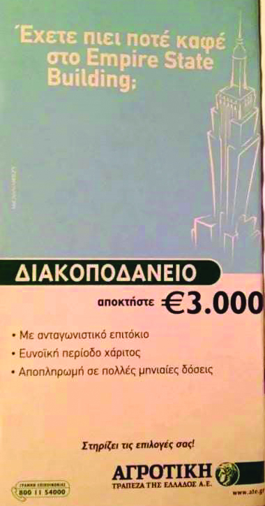 Έκαναν ειδικό τμήμα που πωλούσε δάνεια με απίστευτη διαφήμιση. Το εντυπωσιακό ήταν ότι η αμοιβή (προμήθεια) ήταν ΑΦΟΡΟΛΟΓΗΤΗ!!