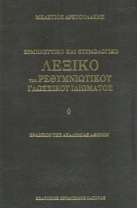 Έτσι, έξι χρόνια μετά (τέλη του 1922) δημοσιοποιήθηκε η βράβευση από την Ακαδημία Αθηνών του νέου βιβλίου του «Ερμηνευτικό και Ετυμολογικό ΛΕΞΙΚΟ του ΡΕΘΥΜΝΙΩΤΙΚΟΥ ΓΛΩΣΣΙΚΟΫ ΙΔΙΩΜΑΤΟΣ». Η είδηση παρέπεμπε σε … έκρηξη ενός υποτιθέμενου «εν υπνώσει» ή ανενεργού ηφαιστείου. Αυτό για όσους δεν γνώριζαν την αγωνιώδη ενασχόληση του ακούραστου εργάτη του πνεύματος με την τοπολαλιά μας.