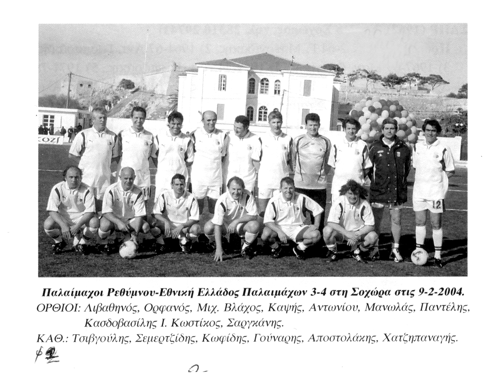 1. Στις 7/2 παρουσία 2000 θεατών έγιναν τα εγκαίνια του συνθετικού τάπητα της Σοχώρας κι ακολούθησε φιλικό παλαιµάχων Ρεθύµνου- Εθνικής Ελλάδας (3-4 µε σκόρερ Καλαΐτζιδάκη, Πολύζο(2), Αντωνίου, Κωστίκο, Σαργκάνη, Αποστολάκη) Με την Εθνική επιπλέον αγωνίστηκαν εκτός από τους σκόρερ οι Καψής, Χατζηπαναγής, Βλάχος, Λιβαθηνός, Μανωλάς, Γούναρης κ. ά (προπονητής ο Γ. Κυράστας, που λίγο αργότερα έφυγε από τη ζωή)