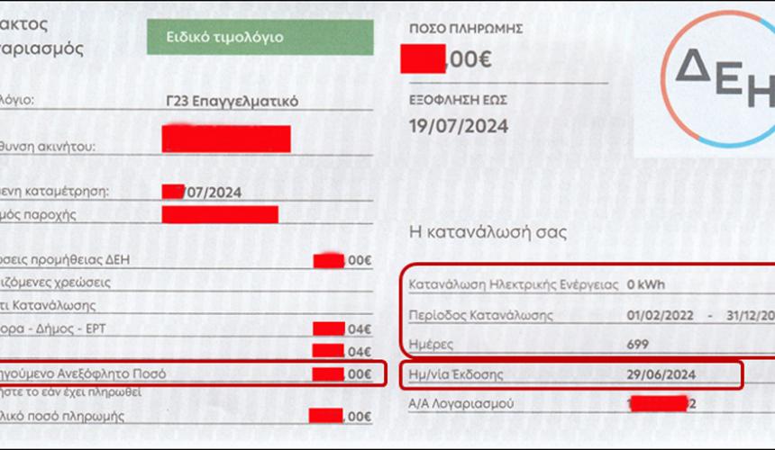 Στην εικόνα βλέπουμε απόσπασμα ενός απ’ τους επίμαχους λογαριασμούς, με πάροχο τη ΔΕΗ (έχουν σβηστεί τα στοιχεία αναγνώρισης). Σε λογαριασμό που εκδόθηκε στις 29/6, η «καλή μας» ΔΕΗ φρόντισε να συμπεριλάβει ως «ανεξόφλητο» το ποσό του προηγούμενου λογαριασμού. Μόνο που στις 29/6 ο λογαριασμός ήθελε ακόμα πάνω από 10 ημέρες για να λήξει και προφανώς δεν ήταν ληξιπρόθεσμος. Με τον τρόπο αυτό το ποσό πληρωμής υπερδιπλασιάζεται κι αν δεν προσέξει κανείς, πληρώνει δυο φορές τον ίδιο λογαριασμό! Είδες η ΔΕΗ;