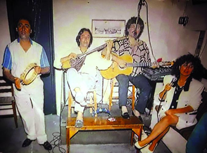 Η μικρή ορχήστρα που διασκέδαζε τους τουρίστες - θαμώνες αποτελούνταν από τον ίδιο στην κιθάρα και στο τραγούδι. Την γυναίκα του Έλλη Αδαμαντίδου επίσης τραγουδίστρια με υπέροχη φωνή και στο μπουζούκι τον Αρμένη Κώστα Καραμπετιάν από τον Πειραιά.