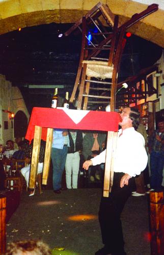 Τότε σηκωνόταν ο Σπύρος τσάκωνε ένα τραπέζι μετά δόντια του κι έφερνε τις βόλτες του!!! Την σειρά του μετά έπαιρνε ο Γιάννης ο Τίγρης ο οικοδόμος.