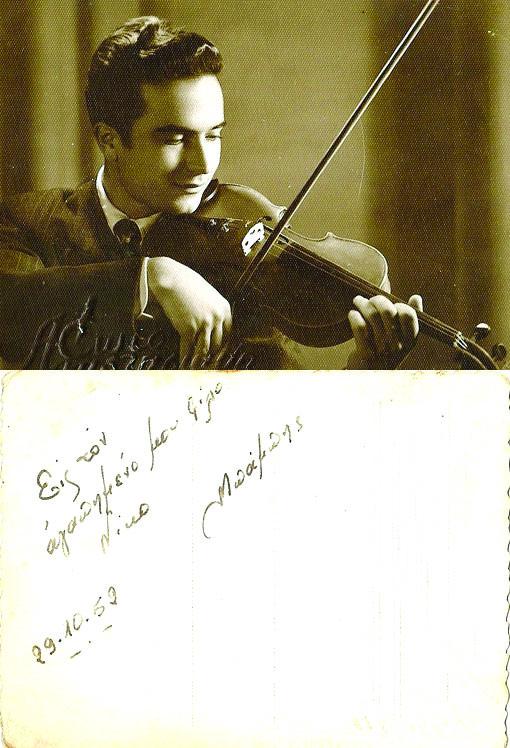 Όμως το επόμενο έτος έφυγε για σπουδές στη Γερμανία, αφήνοντας ανικανοποίητο τον πατέρα του Ευάγγελο, που ήθελε να «νοικοκυρέψει» τον γιο του, παραδίδοντάς του τον φούρνο. Και θα τα κατάφερνε ίσως, αν, τυλίγοντας ένα καρβέλι σ’ ένα φύλλο εφημερίδας, δεν πρόσεχε σ’ αυτό την προκήρυξη μουσικών υποτροφιών του Ιδρύματος Κρατικών Υποτροφιών. Στη φωτογραφία σε αποκριάτικο χορό στο Ρέθυμνο, μαζί με μερικές από τις καλύτερες τότε υποψήφιες νύφες της πόλης.