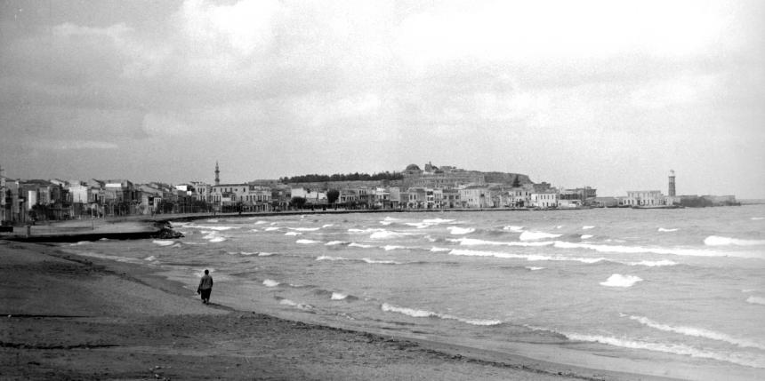 Αφού περάσουμε τα υπολείμματα (ή μάλλον την ανάμνηση) του πλησιέστερου στην πόλη πύργου, του Μπιριτζή Κουλέ, συνεχίζουμε περπατώντας στην αμμουδιά με τα πόδια γυμνά και τα παπούτσια στα χέρια, όπως ακριβώς το απολάμβανε πριν από έναν σχεδόν αιώνα η κυρία που μπόρεσε να φωτογραφήσει ο Ζακάκης (αρχείο Γιάννη Σπανδάγου). Η όλη σκηνή μας θυμίζει το απόσπασμα από το «Χρονικό μιας Πολιτείας» του Π. Πρεβελάκη: «…Από το μέρος του Ηράκλειου, ούθε χύνεται ο στρωτός γιαλός, είναι μεγάλη χαρά να σεριανάς ξυπόλητος μέσα στο κοντοθάλασσο, σε ώρα καλοκαιρινή, και να ξεκουράζεις τα μάτια σου απάνω στον αλαφρό της άμμος και στα παιχνίδια του νερού (Χρονικό 1938, 10).