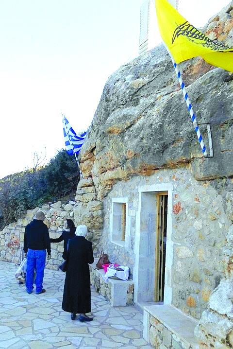 Στο πρανές της λαγκαδιάς ο ιδιοκτήτης της περιοχής Κωστής Στρατιδάκης, συγγενής του συντάκτη των «Ιστορικών περιηγήσεων», διαμόρφωσε τα τελευταία χρόνια μια γοητευτική βραχοκλησιά, σε απόλυτη εναρμόνιση με το εκεί περιβάλλον, σε ανάμνηση του γεγονότος ότι την ημέρα εορτασμού του αγίου είχε διασωθεί σε δυστύχημα.