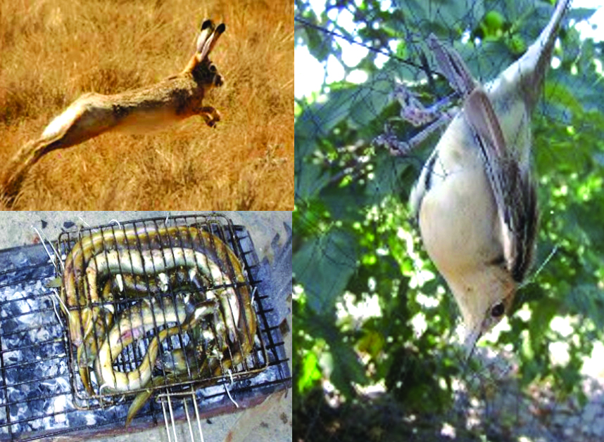 12. Θα κλείσω το θέμα της κατανάλωσης κρέατος, η οποία ούτως ή άλλως ήταν περιορισμένη στις παλιότερες κοινωνίες, με την υπενθύμιση ότι δεν ήταν αμελητέο το ποσοστό του κρέατος που προέκυπτε από κάποιου είδους κυνήγι. Οπωσδήποτε δεν ήταν μόνο εκείνο με όπλα αλλά και με διαφόρων ειδών παγίδες, ιδιαίτερα πουλιών. Στο κυνήγι θα πρέπει αν προσθέσουμε και το ψάρεμα, όχι μόνο ειδών της θάλασσας, στα παραθαλάσσια χωριά (ψάρια, πεταλίδες, πατέλες κ.ά.) αλλά και καβουρομανών και χελιών στις ποταμίδες. Είναι χαρακτηριστικό απ’ αυτή την άποψη ότι οι κάτοικοι του χωριού Αγγελιανά αποκαλούνταν από τους συνεπαρχιώτες τους «Αχελάδες».