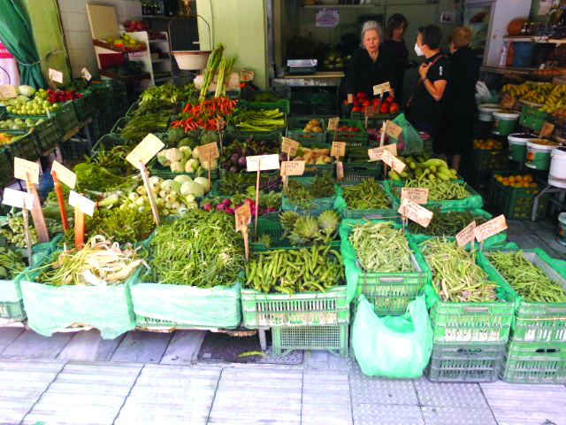 16. Μιας κι αναφέρθηκα στις περασμένες «Ιστορικές περιηγήσεις» στο παζάρι των Μοιρών, το αρχαιότερο εβδομαδιαίο της Κρήτης, ηλικίας κατά πολύ μεγαλύτερης του ενός αιώνα, παραθέτω σήμερα μια φωτογραφία πάγκου του με «όλα τα καλά του Κυρίου». Σημειώνω κάποια από τα περιεχόμενά του, όπως αναγράφονται στις πινακίδες: στίφνος Κρήτης, τσιμούλια Αγίας Βαρβάρας, πικράσταχα Κρήτης, ασκολίμπροι, σταμναγκάθι Χανίων, λάχανα ντολμάδων Αγίας Βαρβάρας, κουκιά φρέσκα Κρήτης, αγκινάρες άγριες, γλιστρίδα Κρήτης, ασπροκόλια Κρήτης, αμπελοφάσουλα Κρήτης, Ρεθυμνιωτάκια Κρήτης, μπαμπακιάς Κρήτης, ατζούρι Κρήτης, αγγούρι μαύρο Κρήτης, ανθοί Κρήτης, κεντανές, μάραθο άγριο Κρήτης κ.λπ.