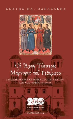 Το αξιόλογο βιβλίο με τίτλο, «Οι Άγιοι Τέσσερις Μάρτυρες του Ρεθύμνου – Συναξαριακά και Βιογραφικά Στοιχεία αυτών – Έλεγχος Ημαρτημένων», αποτελεί μεγάλη τιμή και προσφορά στην περσινή επέτειο των 200 χρόνων από το μαρτυρικό τέλος των Ρεθυμνιωτών Αγίων, που θυσιάστηκαν από τον Τούρκο, ‘για του Χριστού την πίστη την Αγία’.