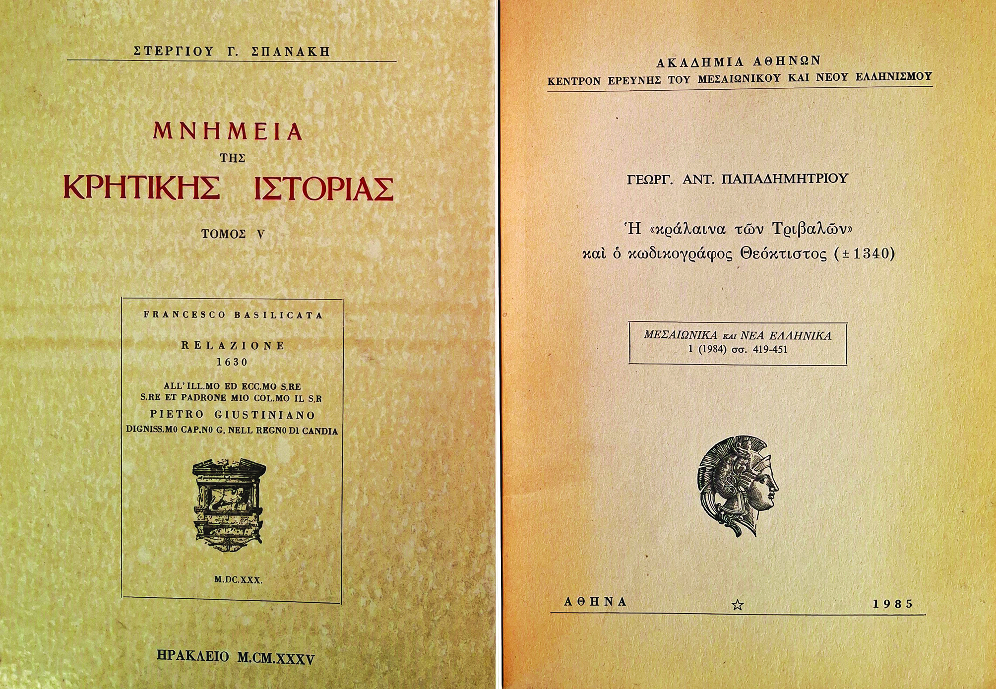 2. Ακαδημία Αθηνών, «Το Κέντρον Ερεύνης του Μεσαιωνικού και Νέου Ελληνισμού 1930-2003. Ίδρυση, λειτουργία, ερευνητικές δραστηριότητες, δημοσιεύματα», Αθήνα 2003.
