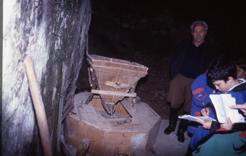 Το ξαναπροσπάθησα αργότερα με τον Δήμο Λάμπης, με «πολιορκητικό κριό» τον συνάδελφο και φίλο Γιώργο Πολάκη, ο οποίος υπηρετούσε στο Δημοτικό Σχολείο Σπηλίου. Είχαμε σχεδιάσει ένα πρόγραμμα περιβαλλοντικής εκπαίδευσης, απολύτως βιωματικό, με πρώτη εφαρμογή στην τάξη του, από την οποία κι έχω τραβήξει την τρίτη φωτογραφία. Εν τω μεταξύ η ζημιά μεγάλωνε, οι πελάτες ελαττώνονταν και ολοένα και λιγότερες σχολικές τάξεις επισκέπτονταν το μυλοτόπι του Σπηλίου, μέχρι που ο κύριος Αντώνης απηύδησε κι έβαλε λουκέτο στον τελευταίο εν ζωή ρεθεμνιώτικο νερόμυλο.