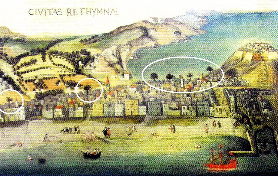 Πάντως, ο πιο χαρακτηριστικός για το Ρέθυμνο φοίνικας ήταν εκείνος στο λόφο της Φορτέτζας (εικ. 4), στην πλατεία που σχηματίζουν το τζαμί Ιμπραήμ Χαν και η κατοικία του Ρέκτορα. Στην ύπαιθρο του Ρεθύμνου χαρακτηριστικά τέτοια δέντρα υπήρχαν στη Μονή Ασωμάτων, στη Μονή Βωσάκου κ.α.