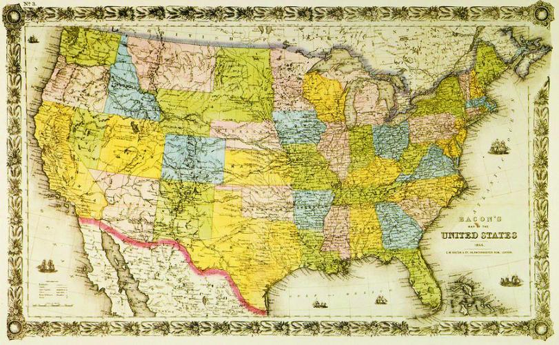 Η ενοποίηση της Αμερικής ήταν μια υπόθεση πολλών δεκαετιών. Μέχρι το 1860 η αναφορά στο όνομα των «Ηνωμένων Πολιτειών» γινόταν στον πληθυντικό αριθμό. Μετά η χρήση του ουσιαστικού γινόταν στον ενικό αριθμό συμβολίζοντας με τον τρόπο αυτό την ενοποίηση του κράτους και των Πολιτειών του, καθώς και των πολιτών του σε ένα έθνος, το αμερικανικό. Οι Η.Π.Α ανήκει σε εκείνα τα παραδείγματα εθνικών κρατών, των οποίων όλα τα ιδιαίτερα εθνικά χαρακτηριστικά έχουν επικρατήσει με την ίδρυση του κράτους και που δεν θα μπορούσαν να προϋπάρξουν χωρίς αυτό.[1] Το κράτος λοιπόν έχει κεντρικό ρόλο στη κατασκευή της ταυτότητας του αμερικανού πολίτη, όμως οι απόψεις γύρω από τον τρόπο διακυβέρνησης των Ηνωμένων Πολιτειών όχι μόνο δεν ήταν ενιαίες, αλλά τις περισσότερες φορές ήταν συγκρουσιακές η μία με την άλλη. Με άλλα λόγια δεν απέδιδαν όλοι την ίδια σημασία στο ρόλο της Ομοσπονδιακής κυβέρνησης, ούτε συμφωνούσαν στο βαθμό παρεμβατικότητας της κεντρικής εξουσίας στη διοίκηση των επιμέρους Πολιτειών. Παρά τις διαφορετικές απόψεις σε γενικές γραμμές η πρόσληψη του έθνους γινόταν κυρίως με οικονομικά κριτήρια. Η ίδια η οικονομική πρόοδος και η δημιουργία της εθνικής οικονομίας θα ένωνε τους πολίτες σε έναν κοινό στόχο για την πρόοδο του έθνους. Αν θέλαμε να συμβολίσουμε την πρόοδο αυτή τις πρώτες δεκαετίες της ύπαρξης του κράτους αυτού θα αναφερόμασταν από τη μία μεριά στην εξόντωση των ιθαγενών και από την άλλη στην επέκταση του σιδηροδρομικού δικτύου, του τηλεγράφου, των καλλιεργήσιμων εκτάσεων, των στρατιωτικών σταθμών και των αμερικανικών ταχυδρομείων. Η οικονομία των ΗΠΑ, ειδικά στην περίοδο 1815-1850, χαρακτηρίστηκε από ένα συνεχές ρεύμα αποίκων, κυρίως Ευρωπαίων. Αυτοί εγκατέλειπαν μια δύστυχη και οικονομικά επιβαρυμένη από τους πολέμους ήπειρο, για να κατοικήσουν μια νέα γη που η αφθονία του χώρου και η ευκαιρία για πλούτο ήταν για αυτούς πρωτόγνωρες. Αυτοί οι άποικοι γίνονταν αμέσως και σχεδόν χωρίς κανέναν περιορισμό τότε αμερικανοί πολίτες.