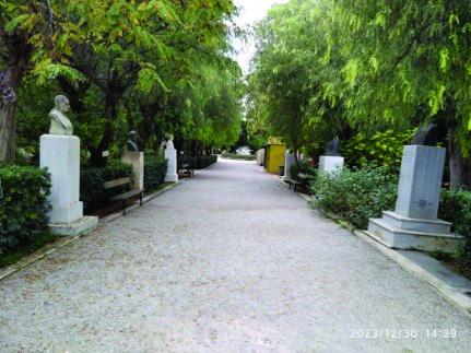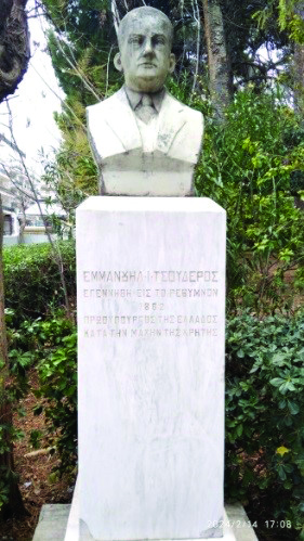 Η ανάγλυφη μορφή του δεύτερου, υποδέχεται τους επισκέπτες στα δεξιά του δρόμου της κεντρικής εισόδου. Η παρουσία του βέβαια παραπέμπει συνειρμικά στην απουσία του πρώτου, που είχε την έμπνευση και την πρωτοβουλία του έργου. Μήπως η αποκατάσταση των πραγμάτων επιβάλλει εγκατάσταση της προτομής του; Μήπως, λέω. Επίσης, αν ήταν να πάρει ο κήπος όνομα, μήπως θα έπρεπε να πάρει τα ονόματα και των δύο; Μήπως, λέω. Δεν νομίζω, άλλωστε ότι θα προέκυπτε πρόβλημα, όπως με τον πρόσφατο επετειακό εορτασμό του Αρκαδιού, όπου ο ένας πυρπολητής έγινε διπλός και μετά κανένας! Μια «πατάτα» δηλαδή, για μην πω… χοντροπατάτα, που κι αν ήθελα να την ξεχάσω, δεν με αφήνει ο μπρούτζινος γείτονάς μου Κωστής Γιαμπουδάκης. Θα αναρωτιέστε προφανώς πού τα μαθαίνω όλα αυτά. Μα από τις συζητήσεις που γίνονται μέσα στον κήπο μου, που είναι χώρος αλληλοπληροφόρησης και σχολείο αλληλοδιδασκαλίας.