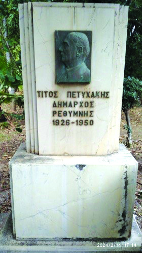 Μετά την αποχώρηση των Γερμανών -θα έλεγα «ξεκούμπισμα»-, ο κήπος επανήλθε στην κανονική του ζωή, με τη φροντίδα και του δημάρχου Τίτου Πετυχάκη, που ξαναπήρε το τιμόνι του Δήμου στα χέρια του (1945-1950) από τους δύο «κουίσλιγκς» δημάρχους της Κατοχής… Το ίδιο χρόνο ο Κήπος μου τιμήθηκε με το Βραβείο «Εμμανουήλ Μπενάκης» της Ακαδημίας Αθηνών. Οι συγκυρίες όμως το ’φεραν, ώστε το όνομα αυτού του φιλόδενδρου δημάρχου να δοθεί σε μια πλατεία -«Πλατεία Τίτου Πετυχάκη»-, που τελικά ούτε «πλατεία» είναι ούτε και πολύ «Πετυχάκη», καθόσον το όνομα της βρίσκεται υπό τη βαριά σκιά του «Πλατάνου», του παλιού ονόματός της, που εξακολουθεί να «ζει και να βασιλεύει» στο στόματα των Ρεθυμνιωτών…