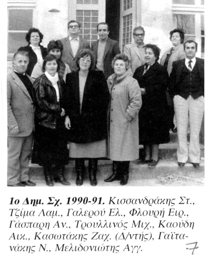 Κουγιουμτζής Δημήτρης Υπηρέτησε στα Άγραφα, Αποκόρωνα και Ρέθυμνο (Δ/ντής 13ου). Πρόεδρος Διδασκαλικού Συλλόγου 1984-85